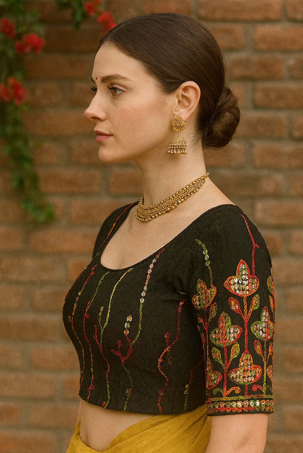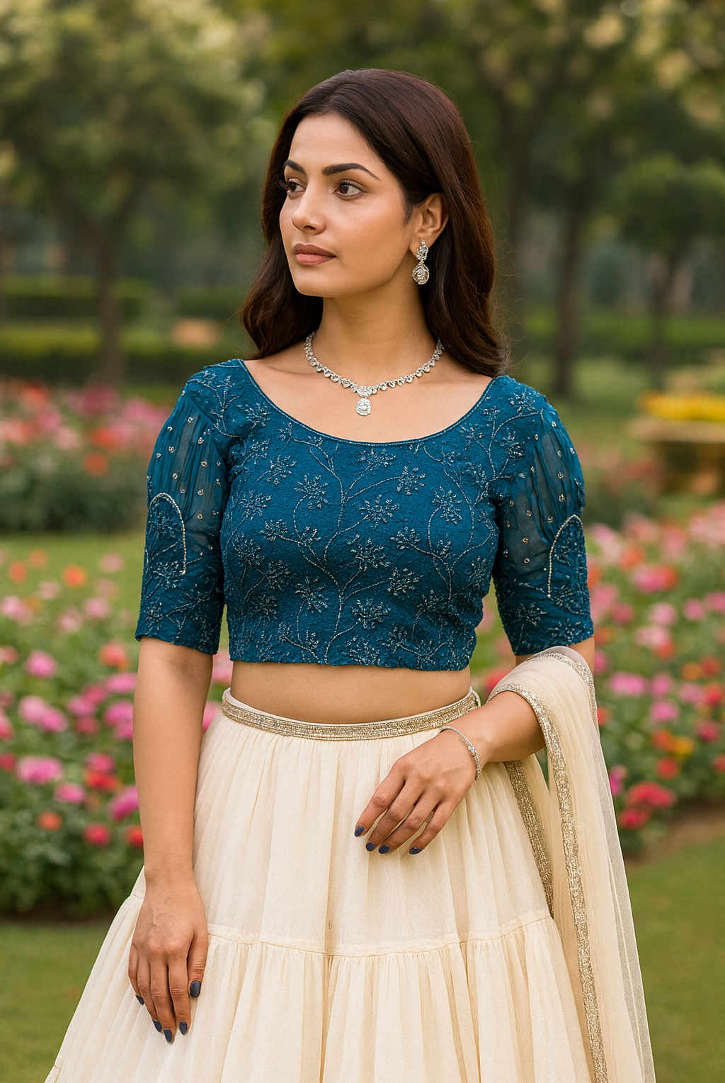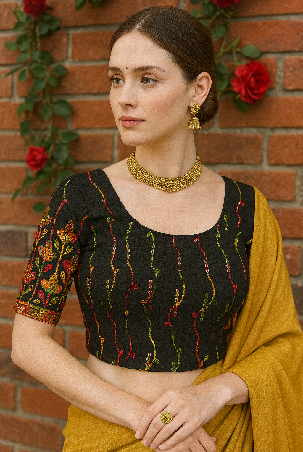 Ensure that your blouse fits well and complements your body shape. Avoid blouses that are too tight or too loose, as they can be unflattering. The right fit will enhance your silhouette and make you feel confident and stylish.