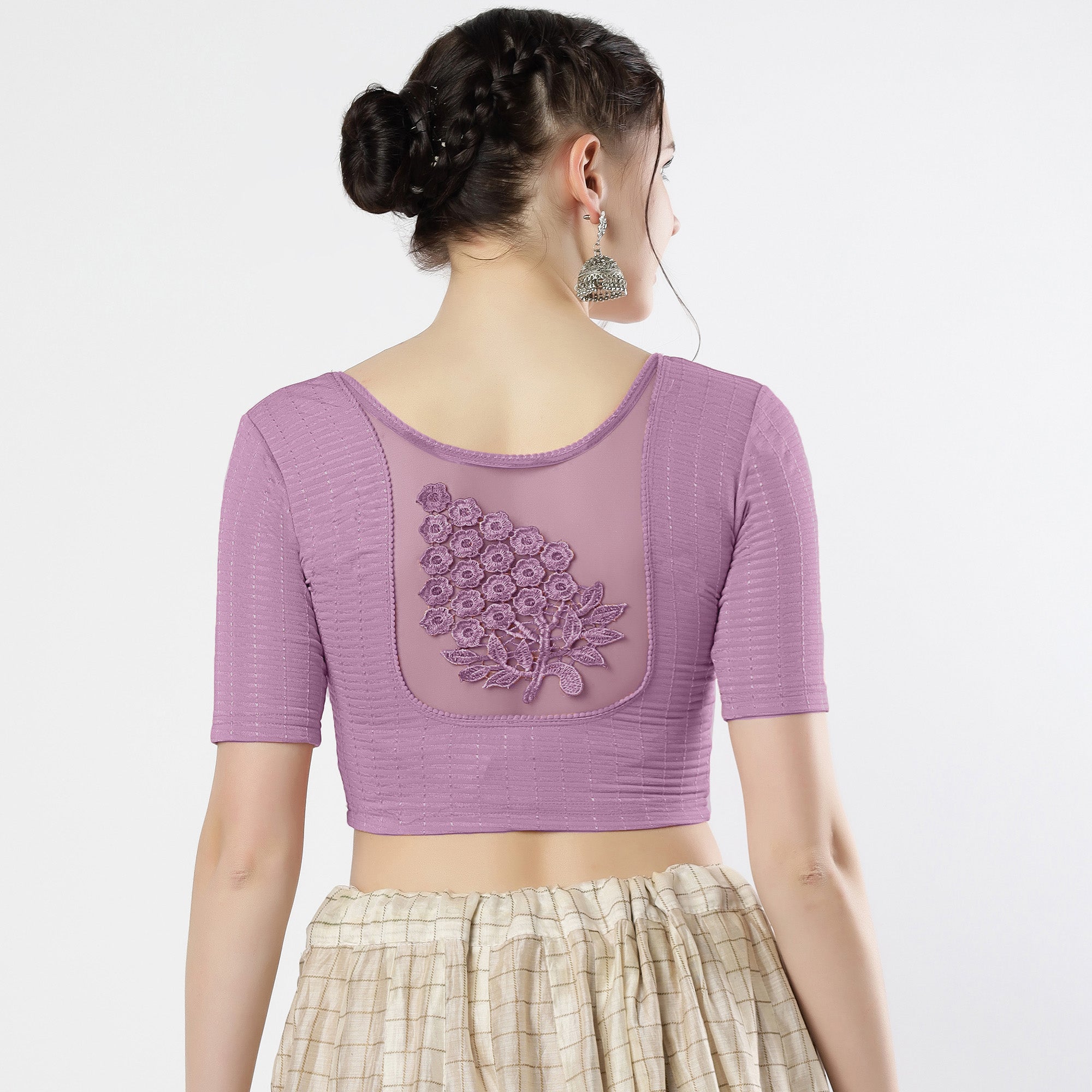 Stay On Trend: Latest Fashion Readymade Blouses for Women, Imported Patterned Textured Velvet Round Neckline, Elbow Sleeves 40040