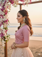 Premium Stretchable ,luxe pastel to dark colours shimmer embossed fabric, V neckline with front fabric buttons stitched on top for extra detail, elbow sleeves, Saree Blouse for Women –18025