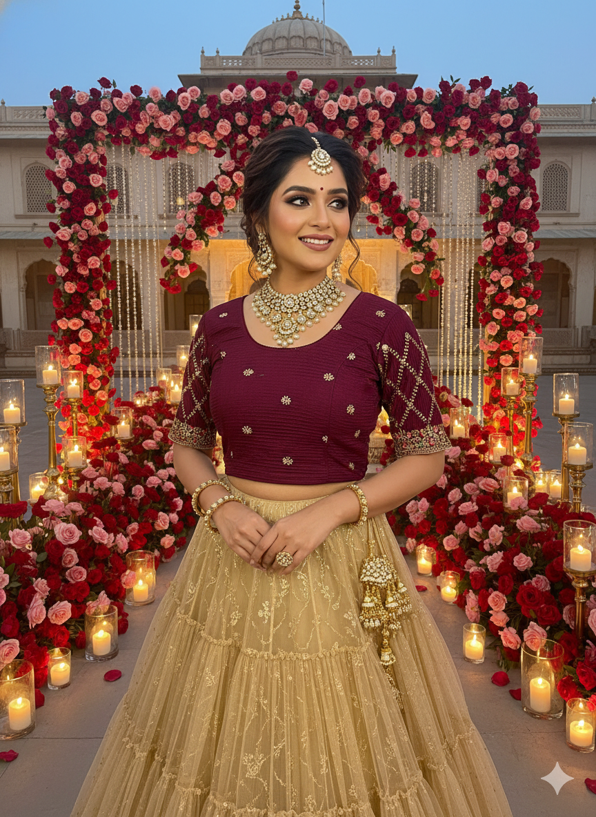 Upgrade your ethnic wardrobe with this Premium Stretchable, round neckline ,Made using high-quality stretch all over embroidered on  self textured fabric crafted for women who value comfort, style, and durability.This blouse offers a snug yet flexible fit that adapts beautifully to different body shapes. The embroidered bordered elbow  sleeves  , provide a graceful silhouette, making it suitable for daily wear, office wear, festive occasions, and casual outings.