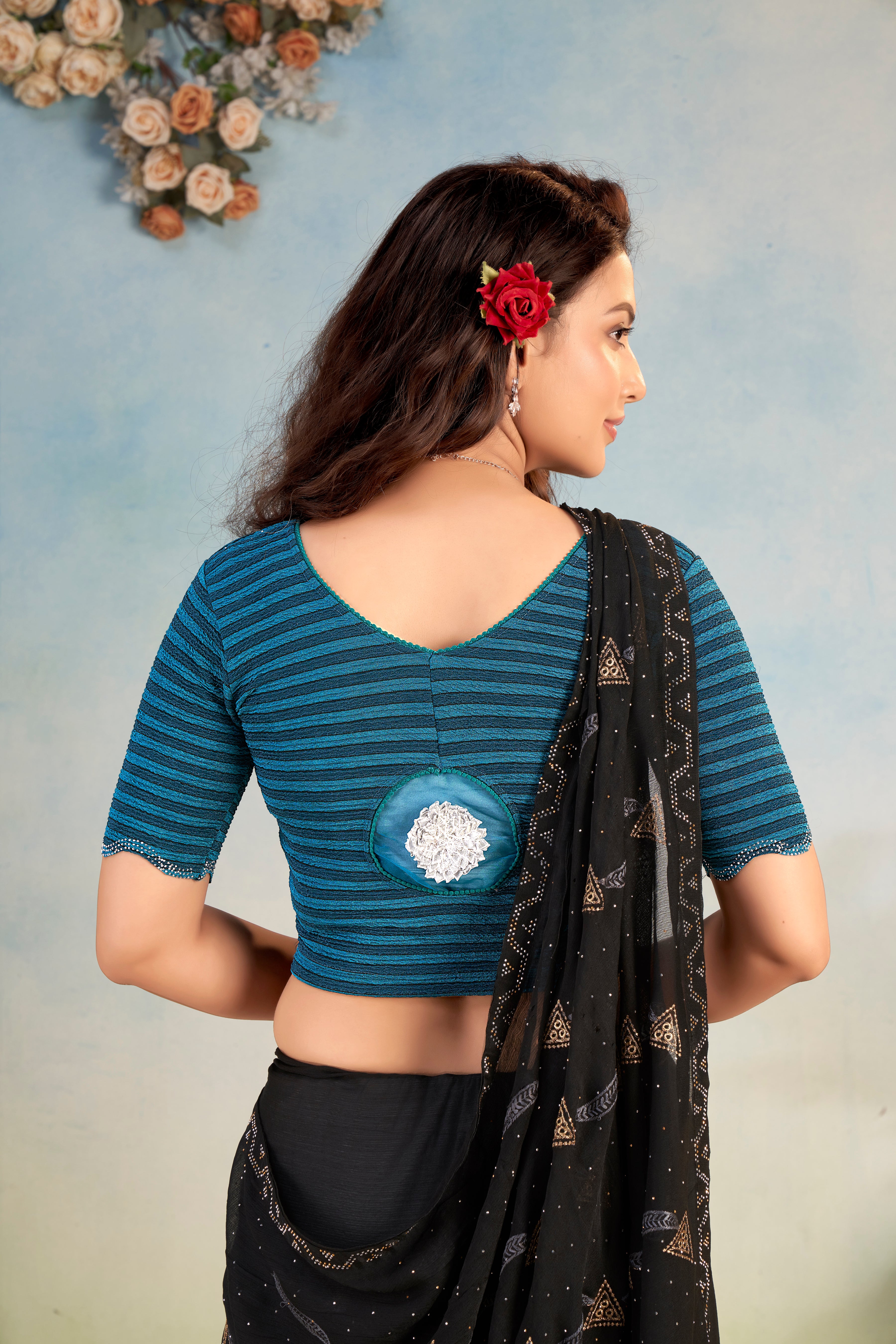 Stay On Trend: Latest Fashion Readymade Blouses for Women,swarovski studded front round neckline ,elbow sleeves and back patch detail on organza.41001