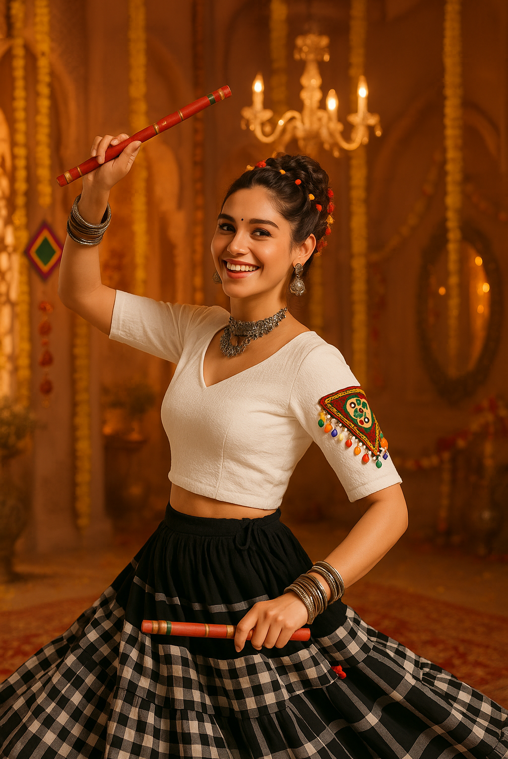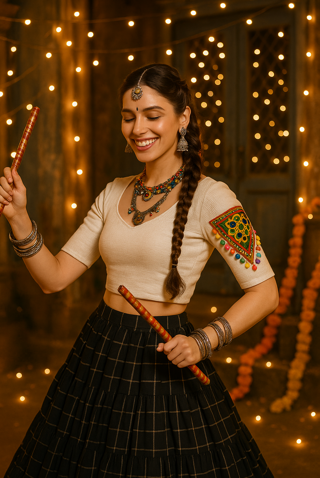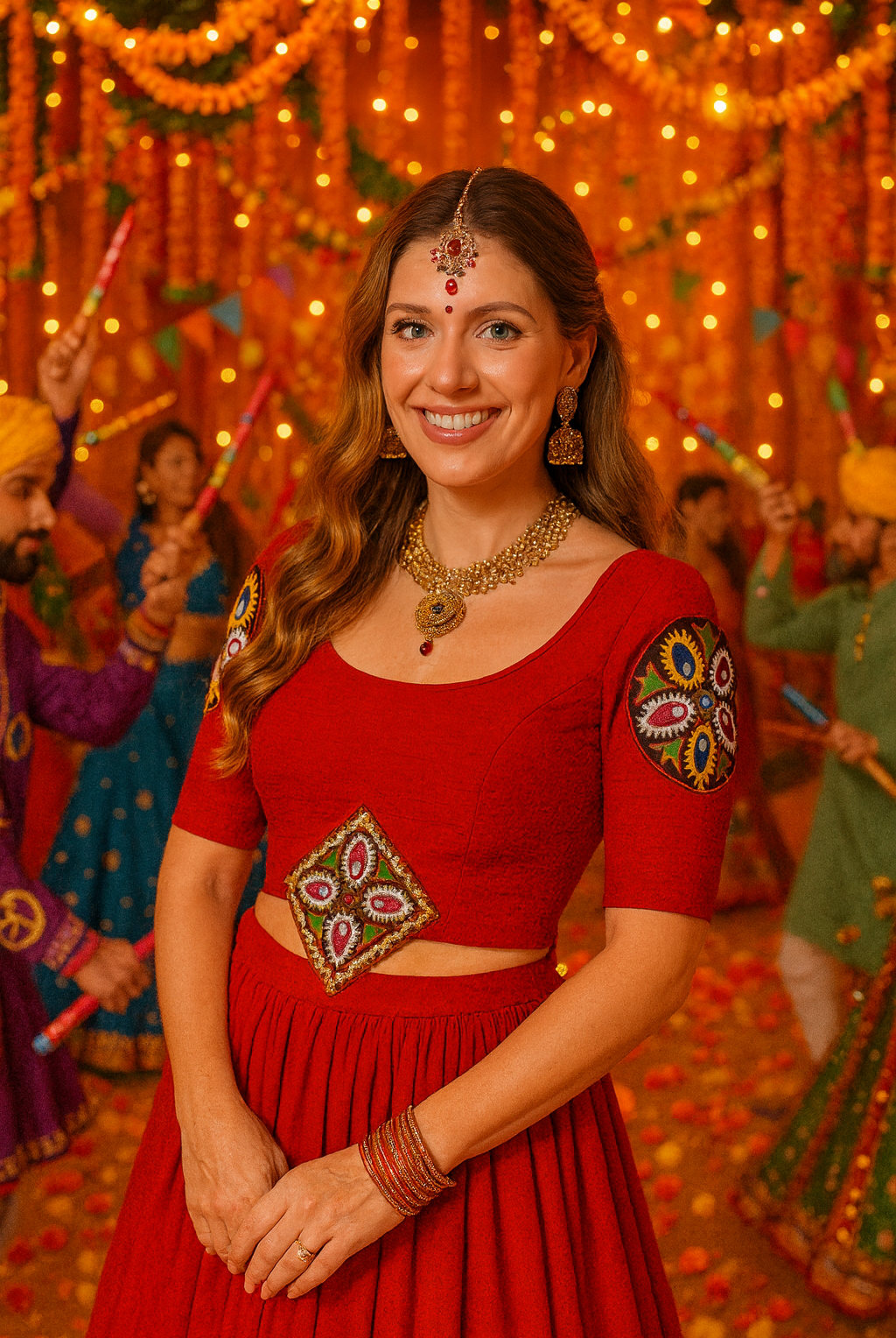 Stay On Trend with Finestfit Navratri Readymade Blouses for Women - Round Neckline, Elbow Sleeves, Kutch Embroidered Applique & Multi-Colour Shells Lace.920