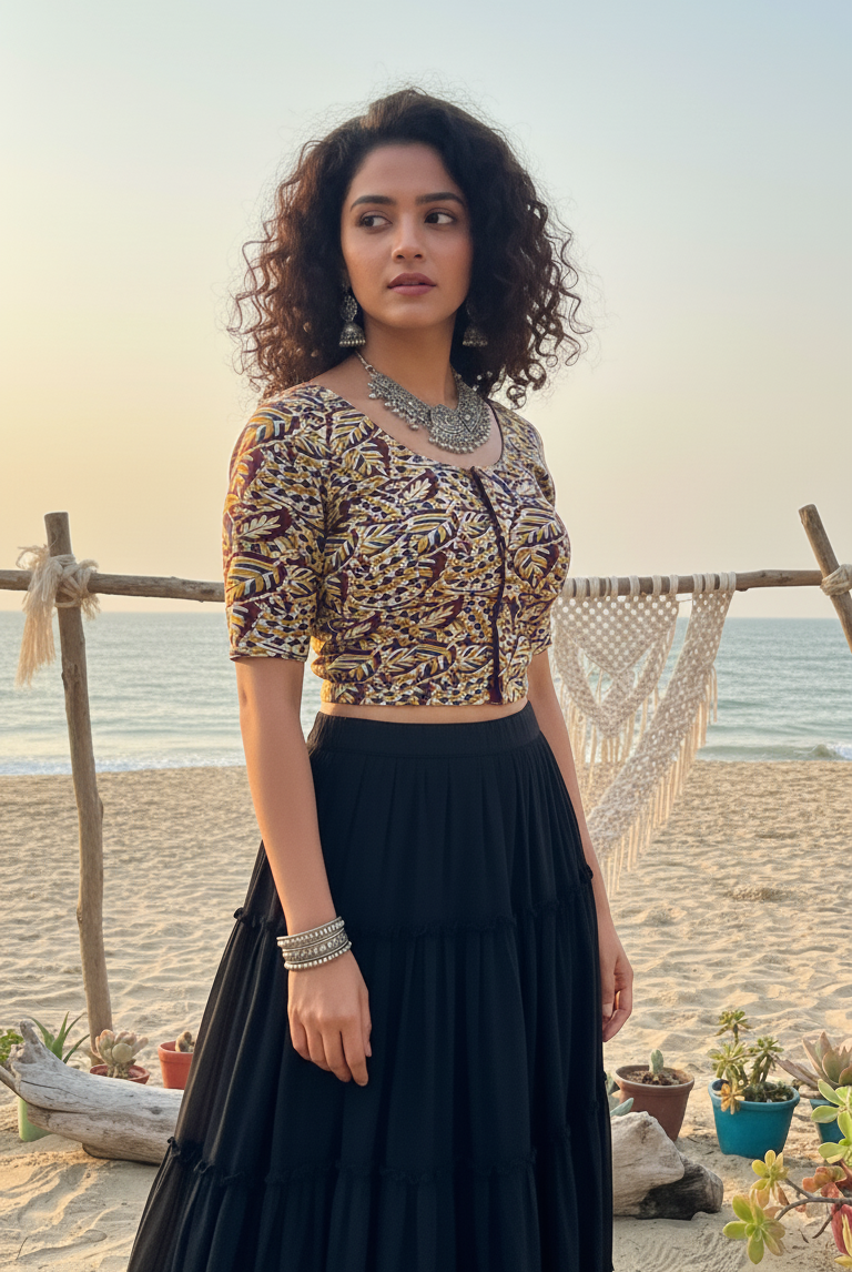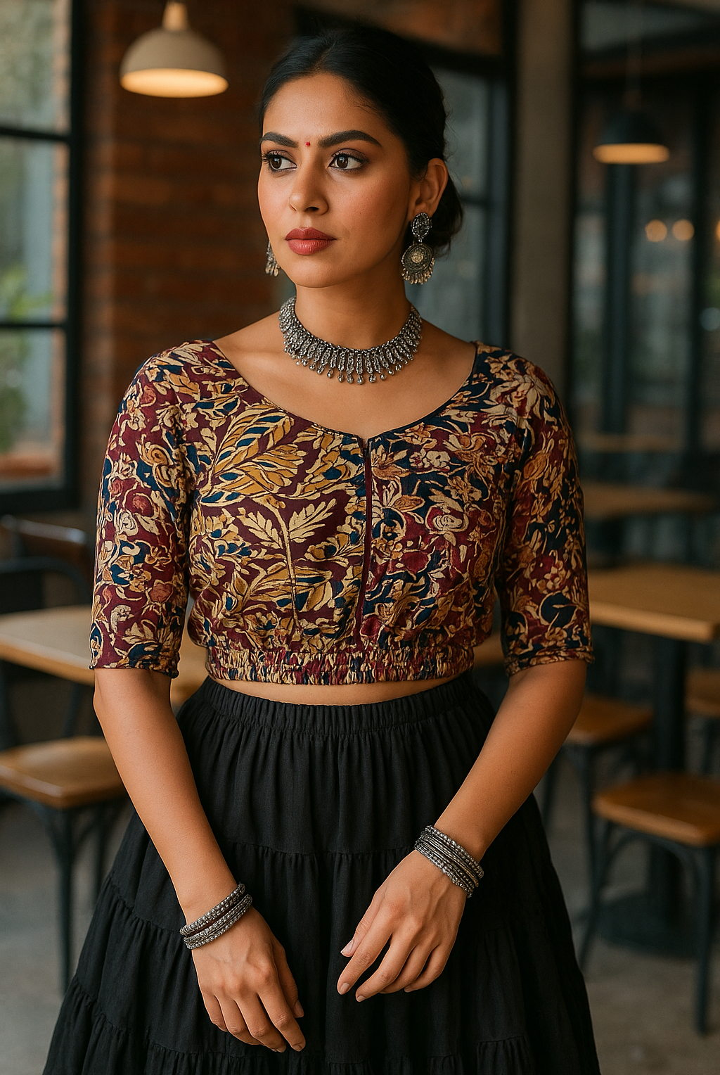 FINESTFIT Kalamkari Printed Cotton Blouse - Stay on Trend with 100% Cotton Design 7905